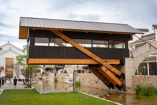 溧阳方所文化村是一个充满魅力的江南水乡文化村,由天目湖旅游度假区与方所文化集团联手打造,于2023年4月9日正式开村 。这个文化村坐落在风景如画的天目湖旁,占地面积近2.5万平方米,是一个新型的城市微度假文旅目的地。 方所文化村的建筑特色十分鲜明,6座现代木构廊桥贯穿整个村落,连接起8个组团的老建筑,村口处还有一座高耸的六角书塔作为精神地标 。村落的建筑风格巧妙地将传统元素与现代设计相结合,山墙、屋顶、青瓦等都进行了做旧处理,同时辅以现代木构空间,营造出一个充满江南韵味的聚落 。 村内业态丰富,包括酒店、艺术驻地、图书馆、IP展示馆等,提供了多样化的文化体验。天目书塔作为村内最显眼的地标性建筑,是国内首座传统木构造型的当代书塔,藏书约3万册,涵盖多个主题领域,为游客提供了一个共修的commune空间 。