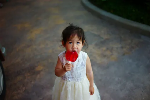 在疯狂动物城两小时排队里一直在我肩头睡觉,出来后醒了钦点了红色脚印糖吃的很开心