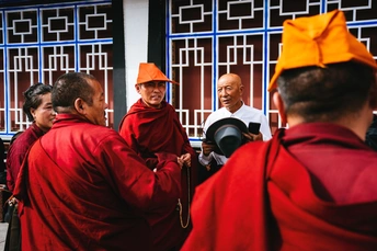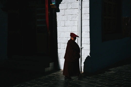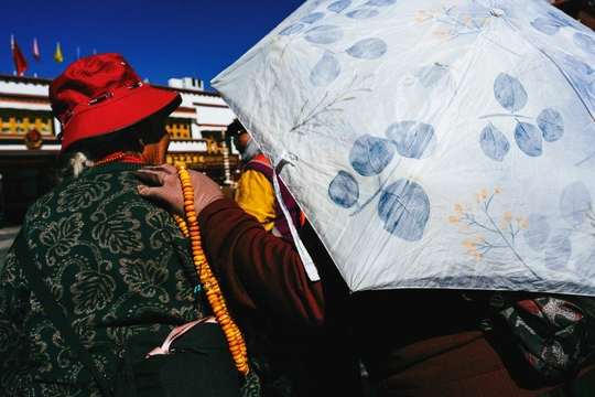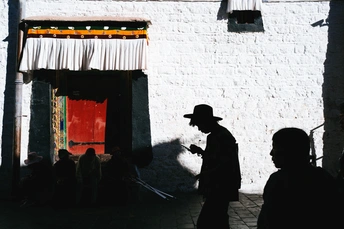 近期的西藏行,始于大昭寺,也止于大昭寺,翻看照片,瞬间被拽回拉萨那个日光慷慨的午后。大昭寺的白墙被阳光镀上一层暖金边,红檐、金顶、经幡在蓝天映衬下愈发庄重,而更动人的是“人”与光影交织的鲜活——转经的信徒、歇脚的路人、着僧袍的身影,都成了信仰图景里的生动注脚。