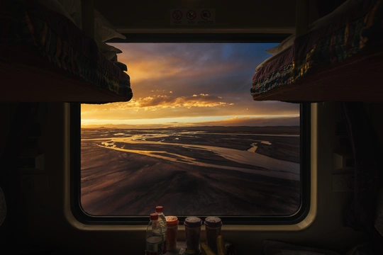 拍摄于青藏铁路的Y972列车,上车锁定我们的席位后立马冲下去给窗户擦了个遍,行驶至唐古拉镇附近时天边烧起了晚霞