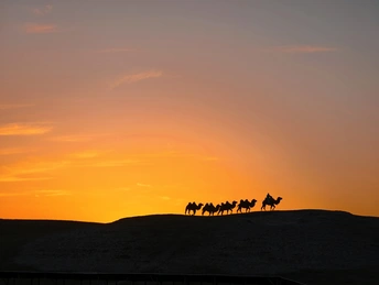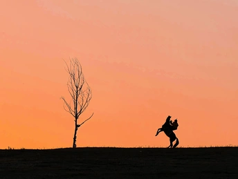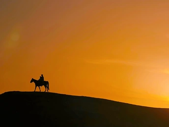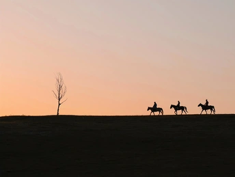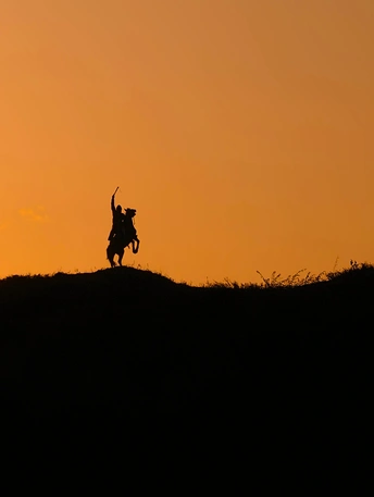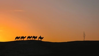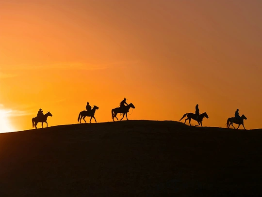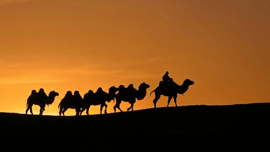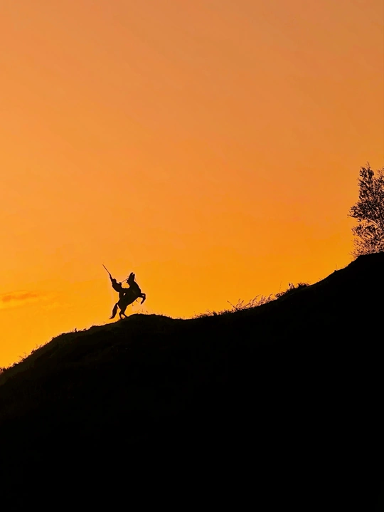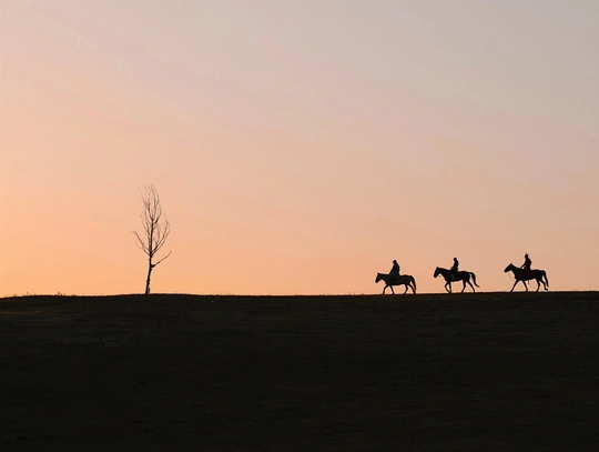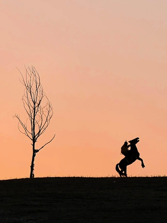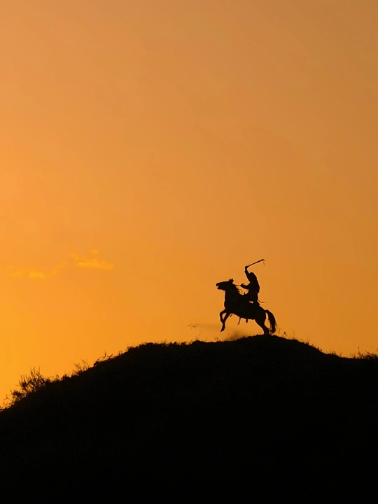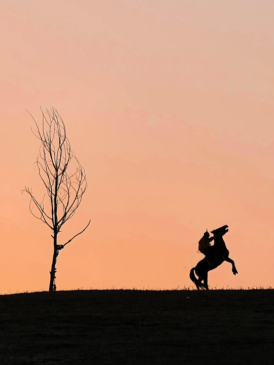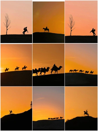 当坝上的秋阳沉向地平线,天地便成了一幅晕染开的橘色长卷。枯树孑立成笔,将晚风的轮廓写在天际;马背上的身影是跃动的音符,蹄声踏碎最后一缕暖光,惊起岁月里的牧歌余响。 驼队踩着起伏的草甸而来,剪影如墨线勾勒的诗行,每一步都轻叩着草原的心跳。秋暮是温柔的滤镜,把喧嚣揉进朦胧的橙黄,只留轮廓里的苍茫与浪漫——是骑手扬鞭时的飒沓,是驼铃摇落的黄昏,是坝上独有的、被时光慢放的旷野抒情。 这些沉默的剪影,是季节写给大地的短章,藏着秋的辽阔,也藏着牧人未说出口的岁月悠长。