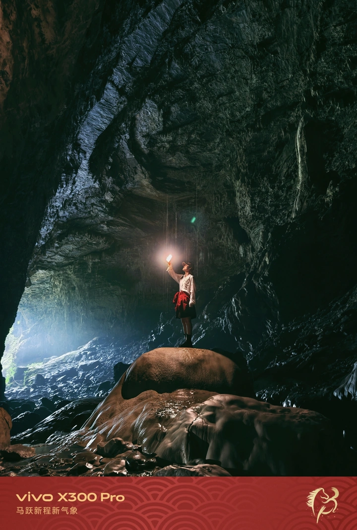 洞穴的暗,藏着光影的诗。手持灯火站成焦点,让自然肌理与人文微光碰撞。全焦段影像捕捉每一寸质感,把未知的深邃,拍成笃定的前行。