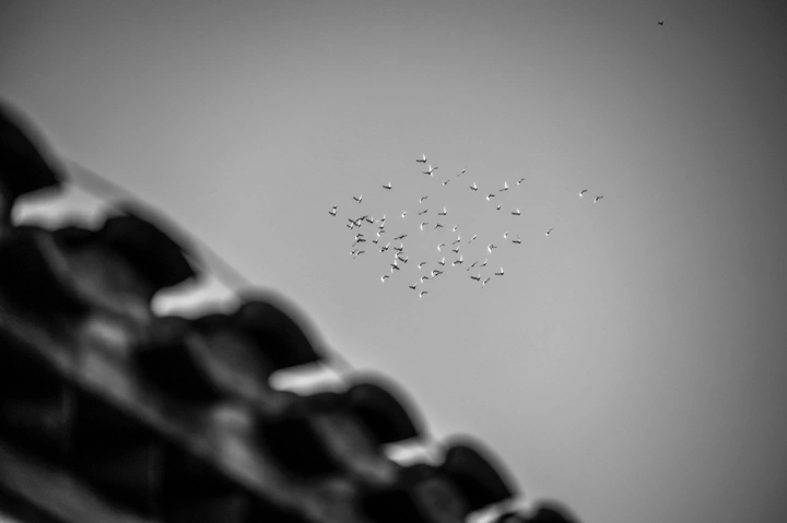 寻声变见一群鸽子在锻炼身体,谁家的赛鸽啊?,右上角望去,总有那么一只不合群不服管的鸽子