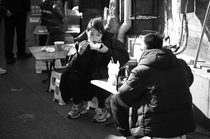 胡同口的小摊儿,支个桌子吃爆肚的五湖四海游客