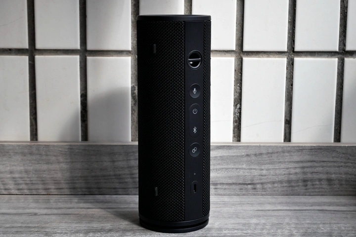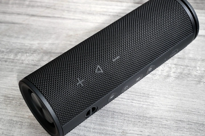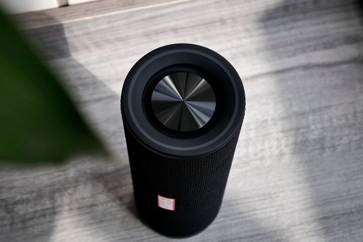 音箱为圆柱体造型,高度210mm,直径72mm,摆在桌上不会占用过多空间,拿在手中也十分轻巧,混纺网布和一体式金属设计,除了带来不错的手感和质感外,还让音箱具备了IP67级防尘防水,不管是泳池边、沙滩上,还是不经意的水杯倾倒,抑或是风吹日晒、春雨绵绵,都能够轻松应对。