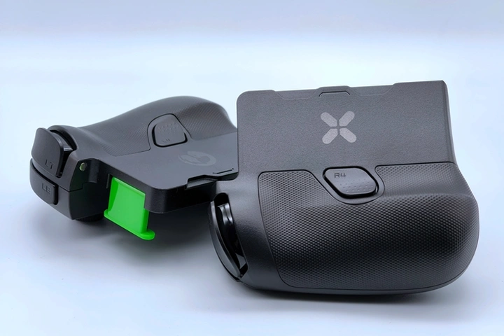 还有就是左右合成一个大手柄的“合体模式”,可以适配暗黑4、NFS等大型手游,并且左右两个手柄在连接时无需使用专用连接器,通过磁吸就可以连接使用,非常方便。当然,我们也可以通过蓝牙将X4幻蝶与电脑进行连接,畅玩PC端的3A大作,不过美中不足的是,磁吸连接的牢固性不是很稳,稍微用力就会分离,希望在下一代产品中会得到进一步加强。