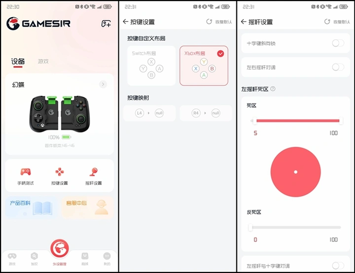 通过APP还可以调节手柄各项参数、自定义背键功能,设置摇杆/板机死区、左右摇杆互换、十字/左摇杆互换等操作,轻松应对不同游戏类型,每一次点击都如你所愿!