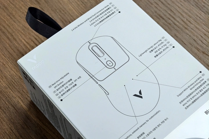抽拉式外包装正面为鼠标的型号以及线条图,背面则简单介绍了鼠标的参数信息。