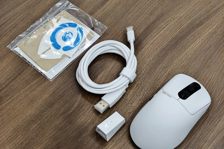 包装内除鼠标外,还附送了伞绳数据线、USB转接器、按键防滑贴和说明书。