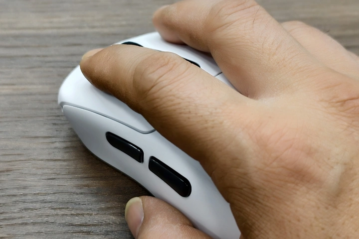 鼠标在左右按键上做了“左高右低”的斜切设计,背部弧度较高,能够完美贴合用户的掌心弧度,抓握、趴握、122、131这些传统握法都能拥有舒适的握持感。