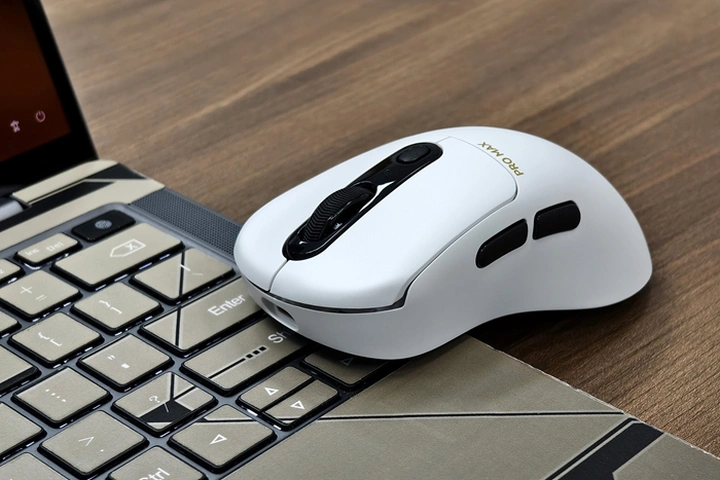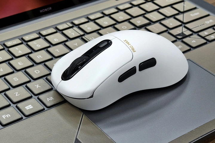 雷柏VT3 PRO MAX设计有4个按键加一个滚轮,左侧有2个侧键,底部还有1个开关键和1个DIY键。众所周知,非对称型鼠标左右键的按键手感会有明显的区别,为了保证手感,雷柏VT3 Pro MAX采用了等距触发结构设计,结合雷柏自研的C+click分离式按键预压校调技术,除了能保证等距触发的手感外,还能使得按键触发非常清脆快速、手感一致,减少空键程和空腔音等情况发生。