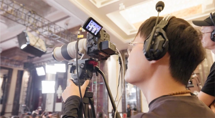另一方面,佳能电影伺服镜头的顺畅变焦与精准对焦能力,为实时直播提供了流畅的画面语言。不同景别之间的切换平滑自然,无论是捕捉舞台上嘉宾的细微表情,还是呈现观众席的群体反应,画面都没有出现虚焦、脱焦,始终保持清晰锐利的成像效果。