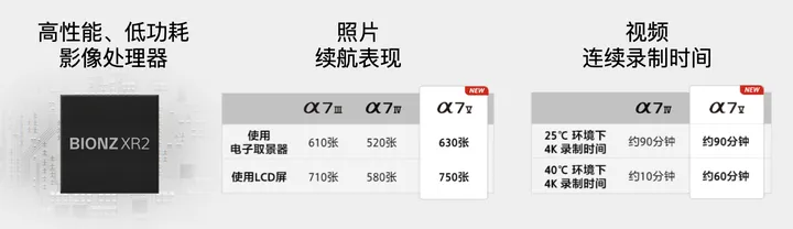 同时,机身首次搭载了新一代BIONZ XR2影像处理器,不仅运行效率更高、能耗更低,还显著提升了相机的续航表现。