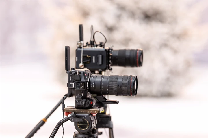 佳能EOS C80和EOS C400两款电影摄影机均搭载6K全画幅背照堆栈式CMOS感应器,能精准捕捉超模的动态姿态与服装面料细节,通过浅景深效果虚化背景、凸显主体,让每一套服装的设计亮点都清晰可辨。搭载的全像素双核CMOS AF II,不仅能精准面部检测、眼部对焦功能,搭配上佳能自动对焦电影镜头,大幅降低了摄影师的工作强度,尤其提升了斯坦尼康机位长镜头跟拍的成功率。