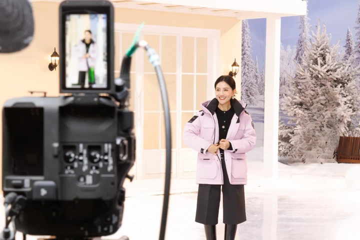 在资源配置上,将讯道系统集中用于开场秀、中场秀等对画质与机动性要求更高的环节,同时以轻量化设备覆盖标准化电商带货场景,在专业效果与成本控制之间实现了有效平衡。机位部署上,走秀环节由9机位组成,覆盖咖啡厅、室外雪景等分场景,结合远程控制系统,精准捕捉明星主播、模特的动态走秀与互动;产品讲解环节,则采用5台佳能EOS C80,实现场景的全方位覆盖,确保穿搭展示与面料细节的高品质呈现。在视觉呈现方面,得益于佳能色彩科学,保障了全流程、多机位视觉呈现的一致性。在工作流程设计上,根据不同环节量身定制技术方案——秀场环节侧重电影级表达,采用讯道系统,集合佳能镜头原厂生态优势以及广电系统无缝集成,支持复杂运镜,产品讲解环节则以效率为先,轻量化系统在保证画质的同时提升执行敏捷性。