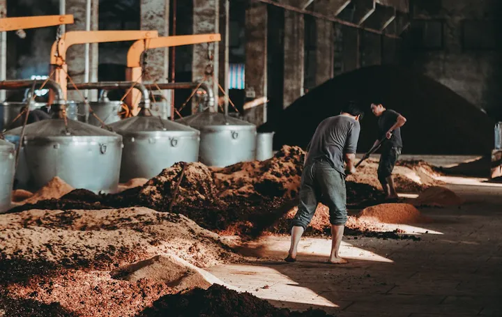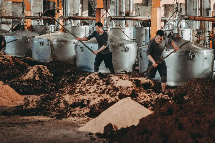 茅台镇特殊的紫红土壤、赤水河优质水源,与千年酿酒环境形成的微生物群落,共同构成了不可复制的酿酒微生态。匠人通过"高温堆积"工艺,吸纳空气中的微生物参与发酵,成就了茅台酒"酱香突出、幽雅细腻"的独特风味,堪称"天人共酿"的典范。