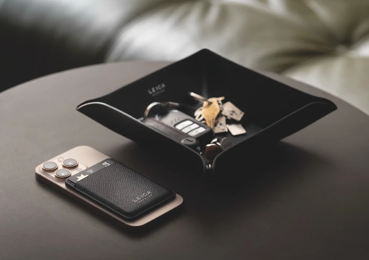 徕卡MagSafe卡套是一款经典日常配饰,可将卡片轻松吸附于手机进行收纳,便捷实用。建议零售价为人民币1,500元。