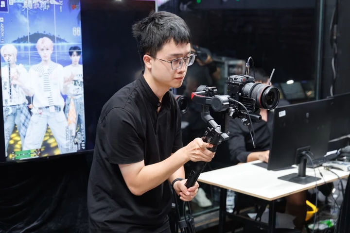 直播团队运镜师沐白操作佳能EOS C50 游机位拍摄画面