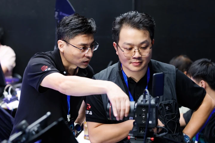 佳能“佳直播”工作人员与直播团队沟通调试直播