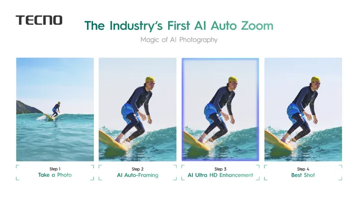 在算法层面,TECNO推出AI RAW 2.0图像引擎,通过对光线、纹理、噪点的精细化处理,提升成像的准确性与纯净度。全新超级变焦快拍功能实现高速对焦与长焦拍摄的同步协作,行业首发的AI Auto Zoom功能则是后期编辑的贴心助手,它会自动识别人物位置并完成构图,省去后期裁剪,按下快门即成大片。