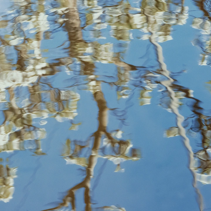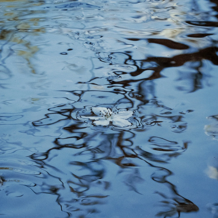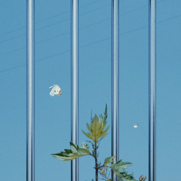 蝴蝶的薄翼、水面的波痕与花枝的剪影,在方形的宁静里,勾勒出一场关于光与轻盈的私语。
