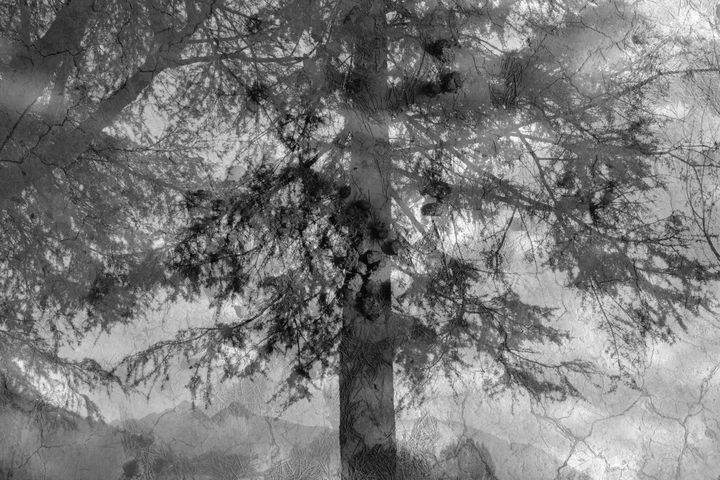 在多重曝光的复调中,山石的永恒、草木的枯荣与传说的缥缈共振叠加,凝成一部秦岭的视觉典籍。