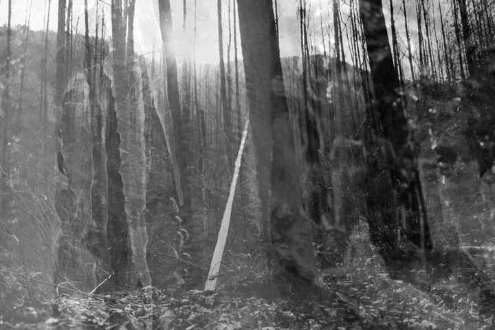 “作品汲取贾平凹长篇笔记小说《秦岭记》的灵感,深入终南山腹地,捕捉自然与人文的影像。通过多重曝光技术,对山川溪流、人类活动、草木生灵以及历史传说进行视觉再创造,讲述关于其中生灵的故事,与小说文本形成互文对话,并赋予影像以新的注解。旨在呈现终南山——秦岭之眼——在中国意象中的深远意义。