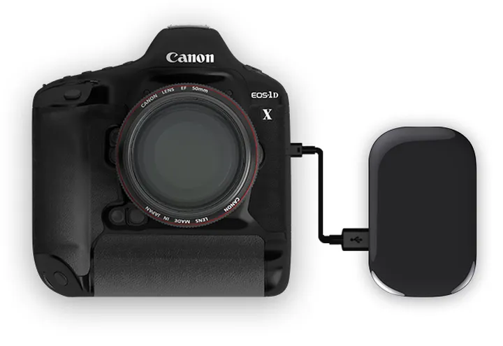 图播小传硬件通过相机连接线连接单反,相比WiFi传图,在复杂环境中传图更加稳定。