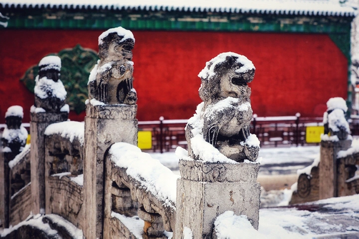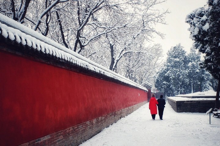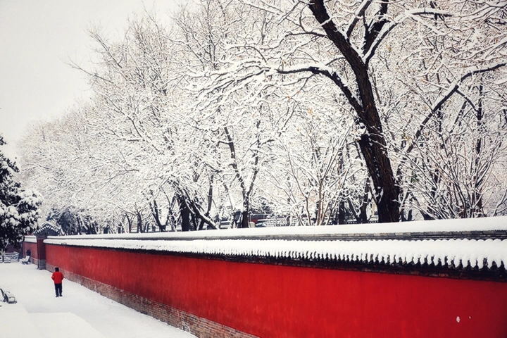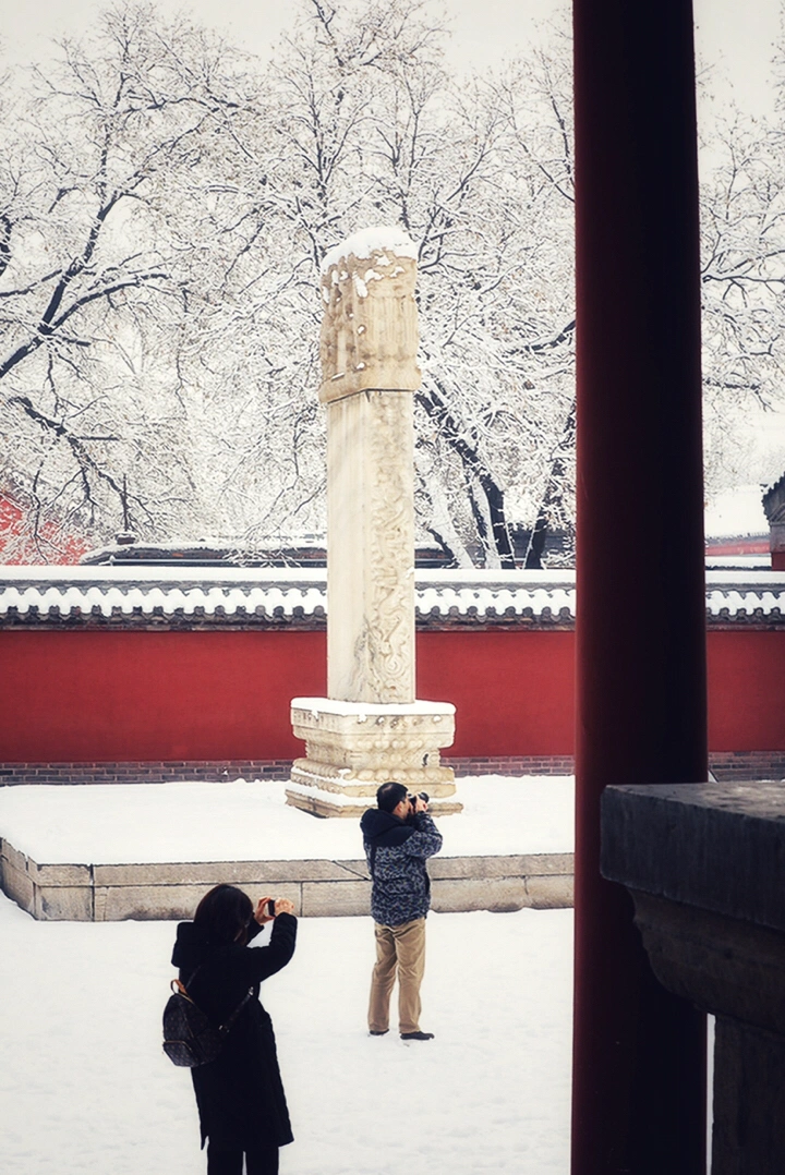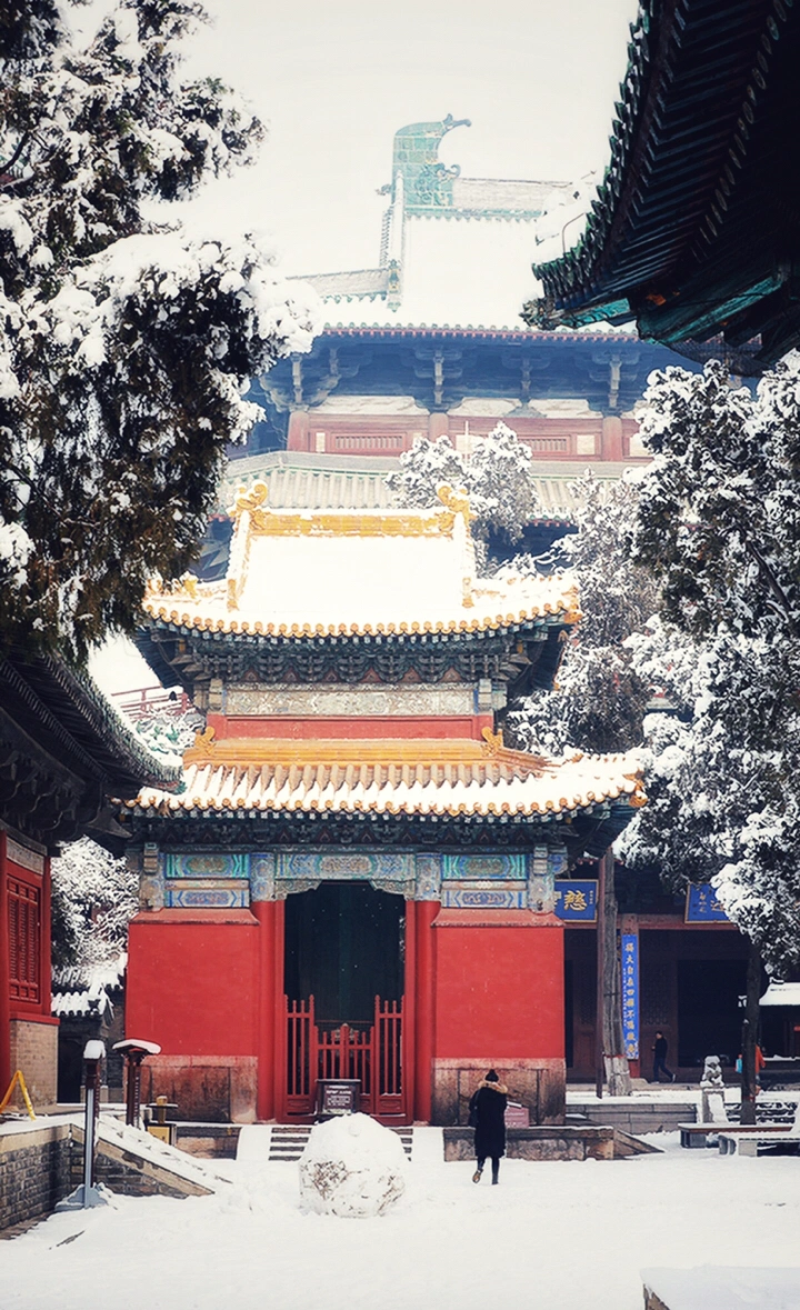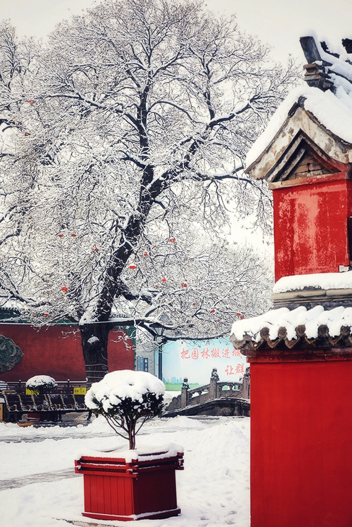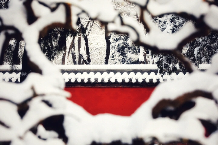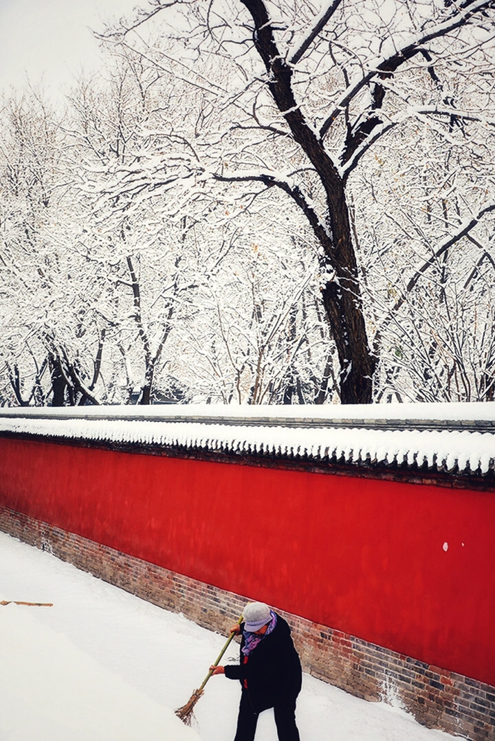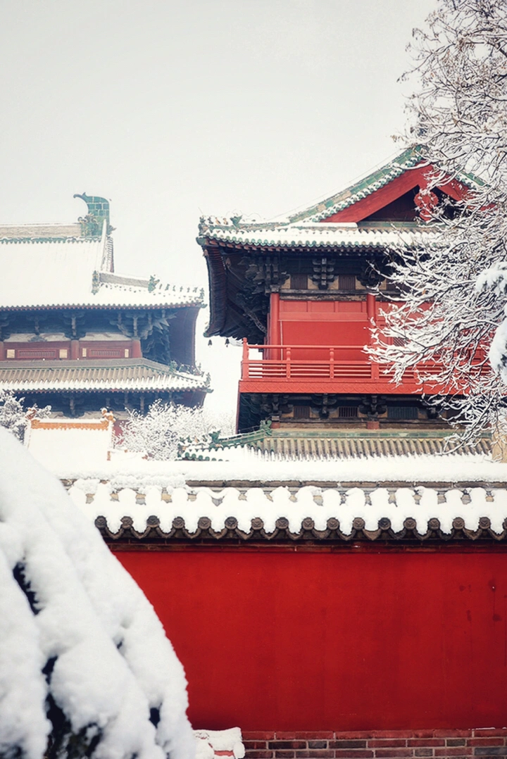 千年古刹大佛寺,每每下雪,就会成为影友必须打卡的地方。都说一下雪故宫就成了紫禁城。下雪的大佛寺,本身就是一首诗,漫漫飞雪,清新脱俗,冰清玉洁,银装素裹,白雪却嫌春色晚,故穿庭树作飞花。当红墙遇到白雪,惊艳了古城,温暖的时光。雪域临风,身心俱净。