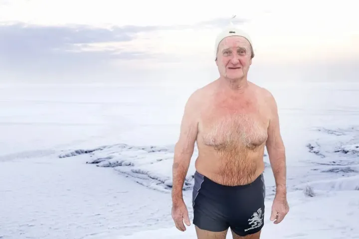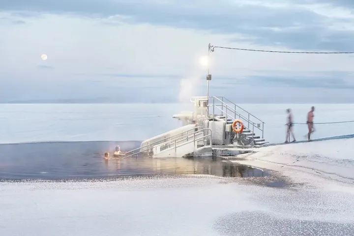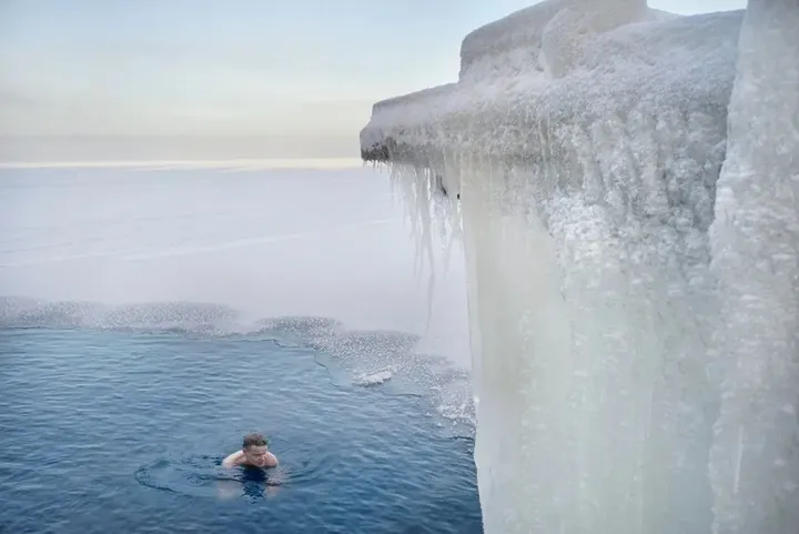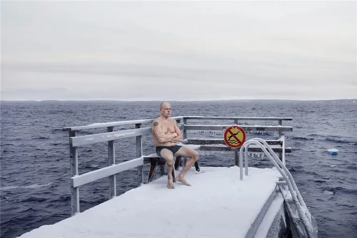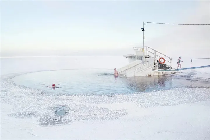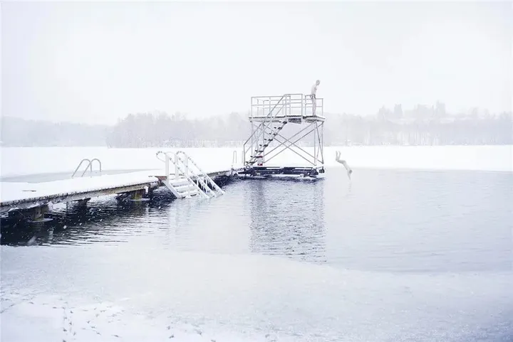 零下24度,芬兰的人民一头扎进结冰的湖里