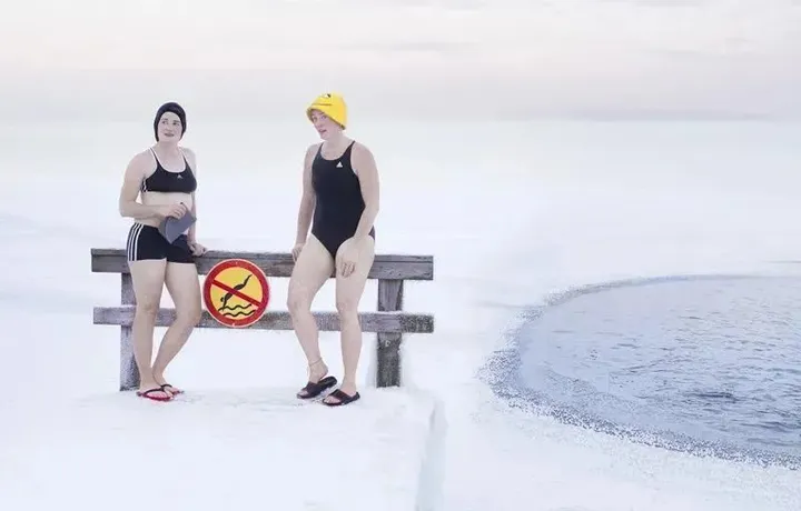 晃眼一看还以为这是在泡温泉?图样图森破啊,人家可是实打实的在冬泳!