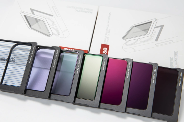 这款全新的手机滤镜系列抛弃了原本易引发手机屏幕触点的滤镜夹安装方式,现在直接将引磁片粘贴在手机背面,当需要使用滤镜的时候将方镜吸附在手机摄像头表面即可。
