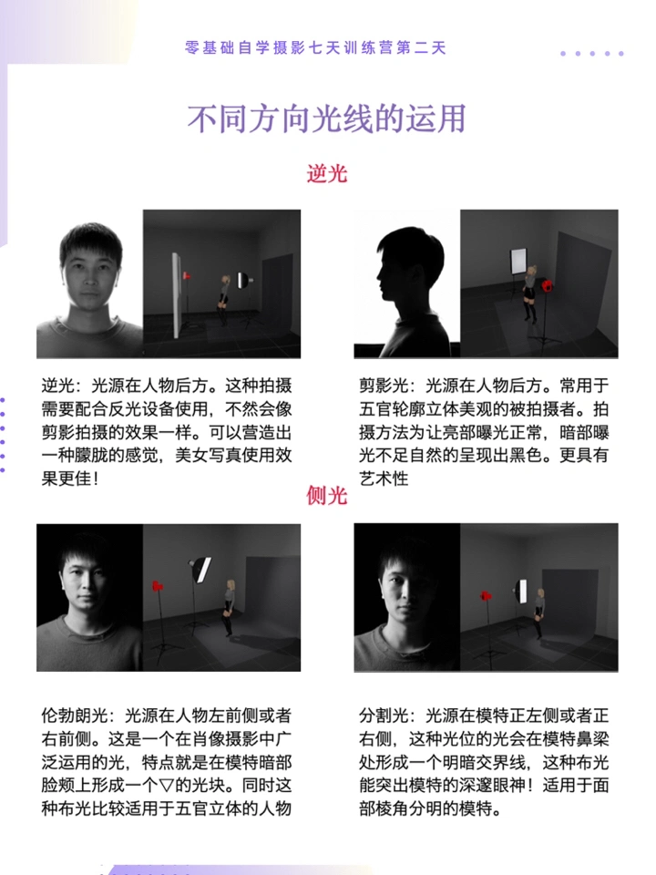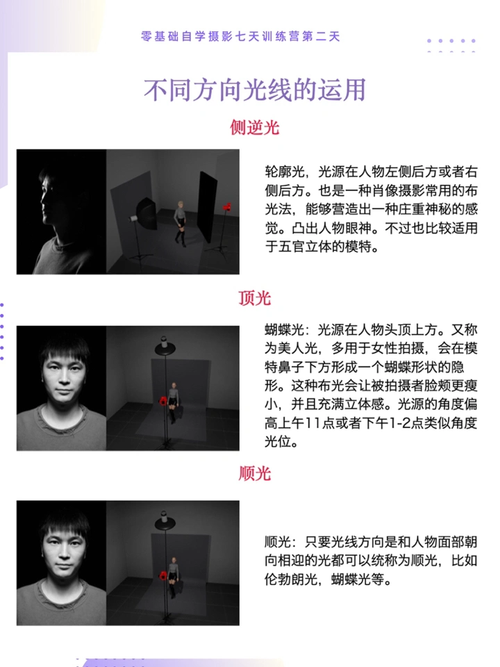2⃣️练习在不同光源位置下的人像自拍(利用窗户光、台灯等等)。