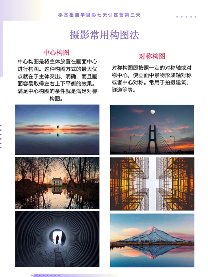 2⃣️对比中心构图与对称构图的区别。