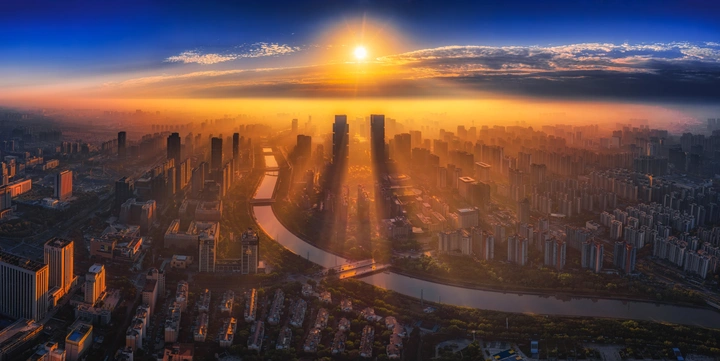 今早五点起床早早来到天台,准备好拍摄平流雾,不过却没有看到心心念的雾气,非常失望? . ?持续在寒风中等待了接近一个小时,太阳冲破云雾到那一刻,周围突然又升腾起了雾气,我惊喜万分,拿出无人机升空,定格下了这眼前震撼的一幕。。 @米拍社长 @米拍小助手 @米拍编少
