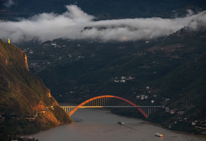 1张巫峡又名大峡,以幽深秀丽著称。整个峡区奇峰突兀,怪石嶙峋,峭壁屏列,绵延不断,是三峡中最可观的一段,宛如一条迂回曲折的画廊,充满诗情书意。巫峡峡长千谷深,迂回曲折,奇峰嵯峨连绵,烟云氤氲缭绕,景色清幽之极,如一条美不胜收千奇百怪的画廊。在重庆巫山和湖北巴东两县境内,西起重庆市巫山县城东面的大宁河口,东迄湖北省巴东县官渡口,绵延四十公里余,包括金盔银甲峡和铁棺峡,峡谷特别幽深曲折,是长江横切巫山主脉背斜而形成的。船过巫山县城就进入了长江三峡的第二峡巫峡,巫峡位于重庆市巫山县与湖北省巴东县之间,全长42公里,山高入云,有巫山十二峰擅奇天下。巴东属段22公里。西起边域溪,东至县境官渡口镇,古又称巴峡。巫山十二峰分别坐落在巫峡的南北两岸,是巫峡最著名的风景点。它们上干云霄,壁立千仞,下临不测,直插江底;峡中云雾轻盈舒卷,飘荡缭绕,变幻莫测,为它们平添了几分绰约的风姿;而流传至今的种种美丽的神话传说,更增添了奇异浪漫的诗情。巫峡谷深狭长,日照时短,峡中湿气蒸郁不散,容易成云致雾,云雾千姿百态。“巫峡云雨”典故源于战国宋玉《高唐赋》《神女赋》,讲述楚王与巫山神女梦幻相遇。