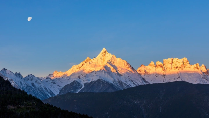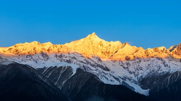 海拔6740米的金色雪峰在蓝天下闪耀 照相机制造商 Canon 照相机型号 Canon EOS 5D Mark IV 光圈值 f/11 曝光时间 1/45秒 ISO速度 ISO-125 曝光补偿 0档光圈 焦距 70毫米 最大光圈 3 测光模式 点 目标距离 闪光灯模式 无闪光,强制 闪光灯能量35mm 焦距