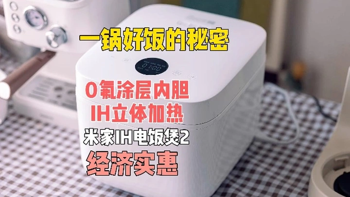 米家IH电饭煲2主打健康材质与IH立体加热技术,兼顾美味与安全。 内胆采用真0氟涂层,经高温烧结工艺,检测未检出氟化物,从源头避免涂层脱落隐患,适合母婴及注重健康的家庭。六层合金厚釜结构,表面光滑不粘,耐磨易清洁。 加热方面使用IH电磁环绕技术,替代传统底盘加热,锅内温差小、火力均匀,使米饭充分糊化,口感粒粒饱满,并获得7A级好米饭认证。 功能上支持精煮、快煮等8种模式,快煮仅需26分钟,满足日常高效烹饪。破泡器为双排六孔可拆卸设计,清洗方便;还支持24小时预约与12小时保温。 提供2升到5升多种容量,适配一人食到多口之家,整机享有3年质保服务。