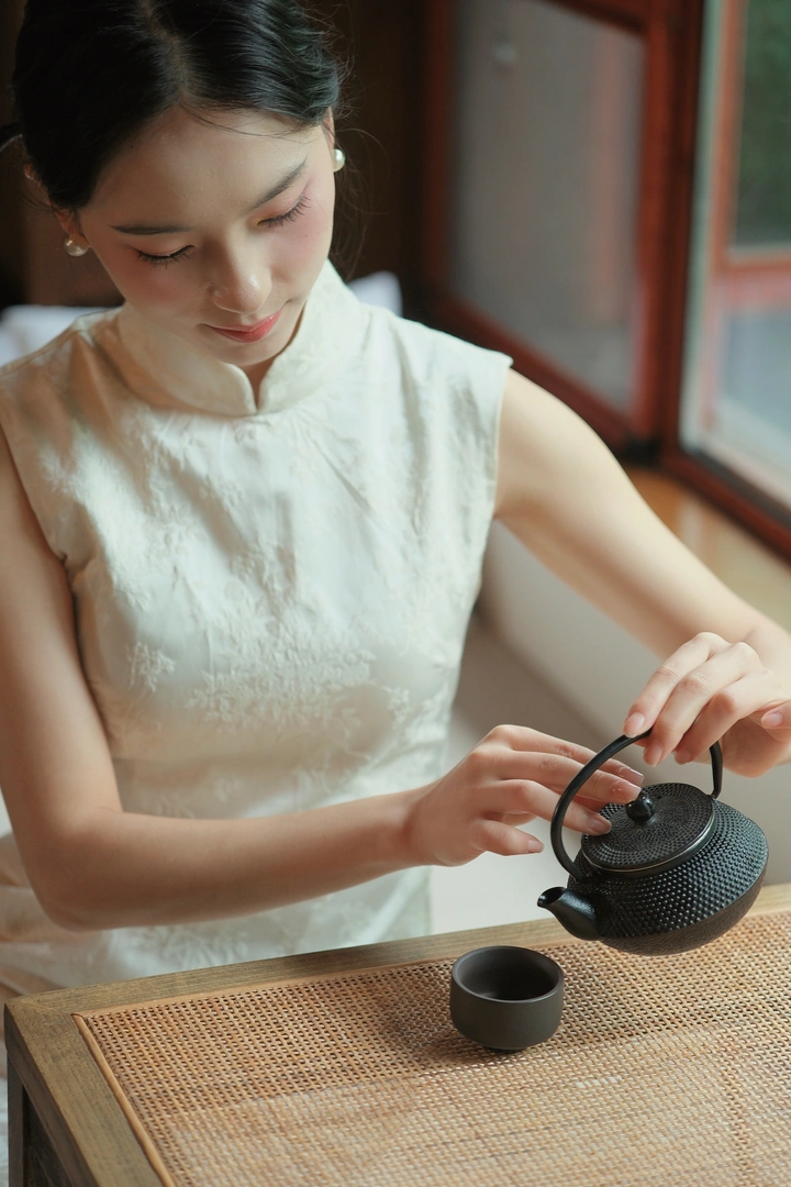 中式禅茶出片:茶汤里泡着四季,入口是春的鲜,回甘是秋的静,暖了时光,也慢了心慌。出镜:小燕妹妹。