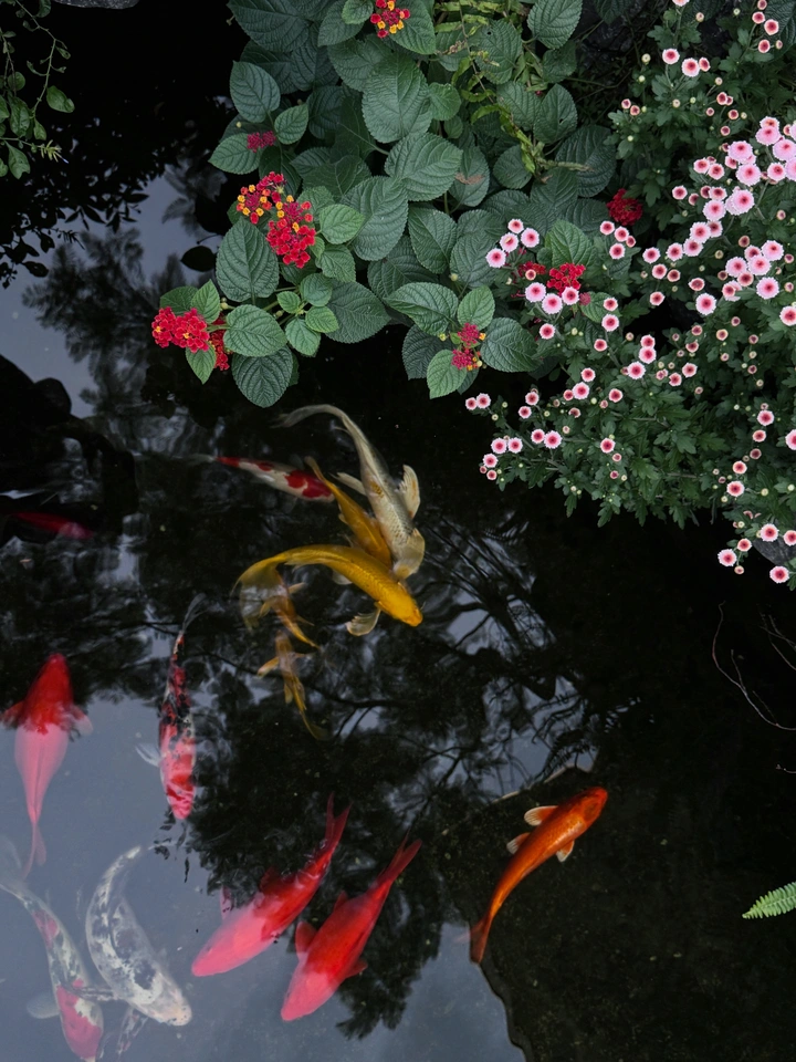 周末散步去盒马买一份生菜,路上偶遇的鱼戏图,脑海里浮现出知否知否。昨夜雨疏风骤,浓睡不消残酒。试问卷帘人,却道海棠依旧。知否,知否?应是绿肥红瘦。两张风格都适合秋凉的成都。