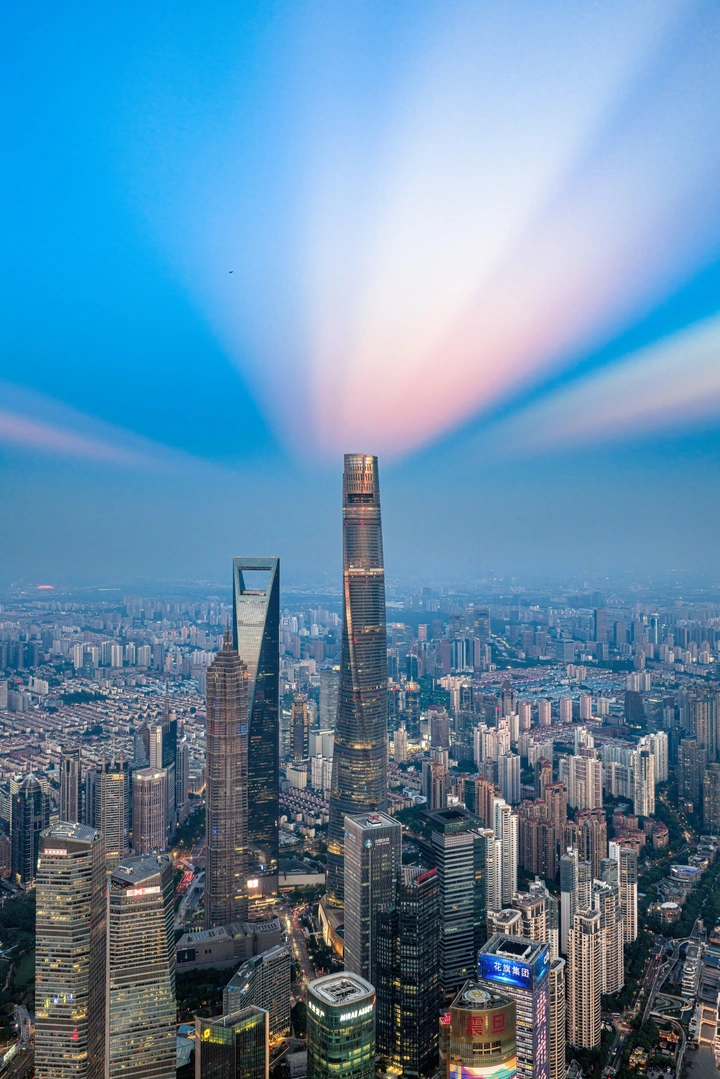 当钢筋森林遇见天空魔法,用无数次快门捕捉魔都的9种心跳频率——闪电、星轨、彩虹、水晶天、风暴、平流雾、朝霞、日落、晚霞