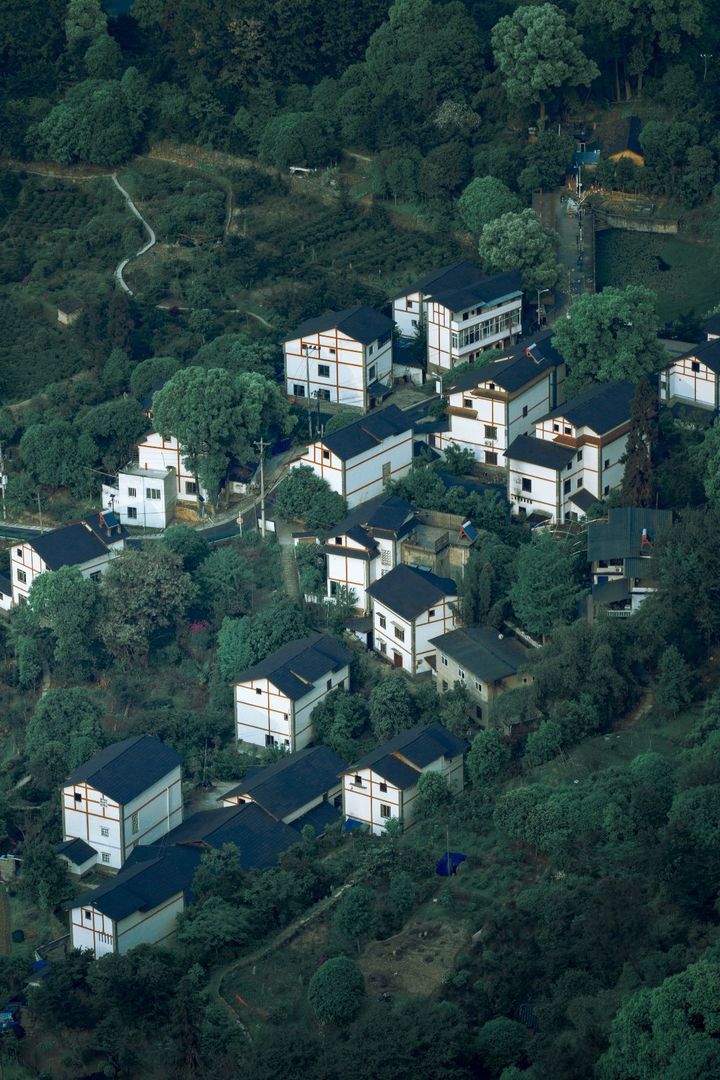 夕阳映照群山村落,信仰如光,虽渐隐却永不灭。