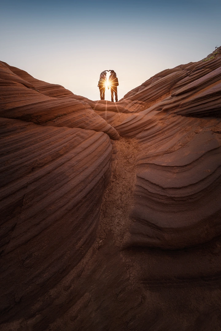 夕阳漫过丹霞褶皱,爱侣指尖捧起光的心跳,天地为幕,每缕风都在为这份心动和声。(R52+16-35MM)F8 1/60S ISO250