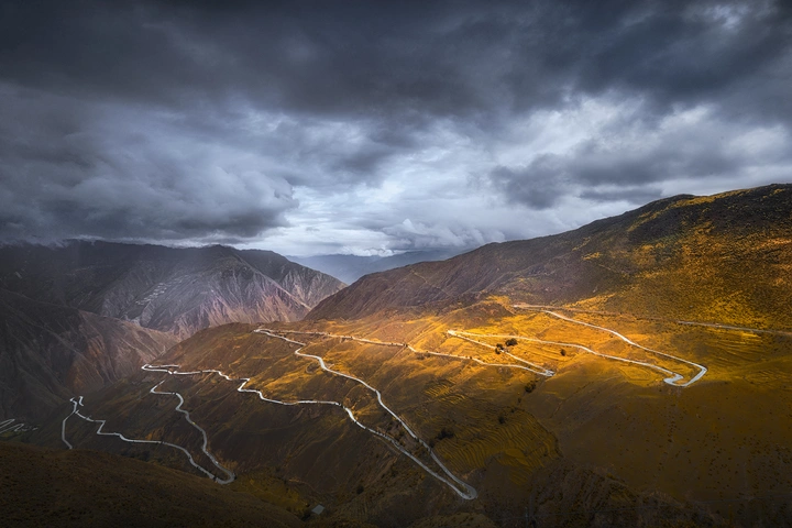 怒江72拐,于苍茫天地间蜿蜒。山如巨兽盘踞,云似泼墨翻涌,光影交织,铺就震撼人心的高原奇景。