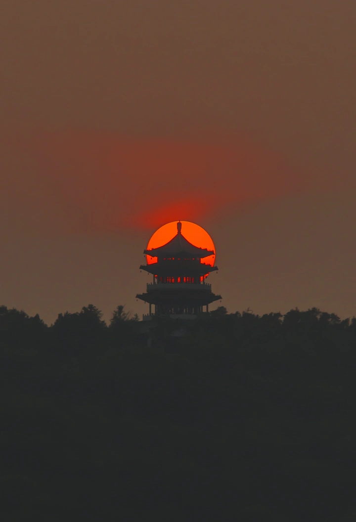 鼋头渚的舒天阁是蠡湖景区带的标志性建筑,环蠡湖一周都能看到它,所以,只要角度对了,一年四季都应该可以看到悬日。