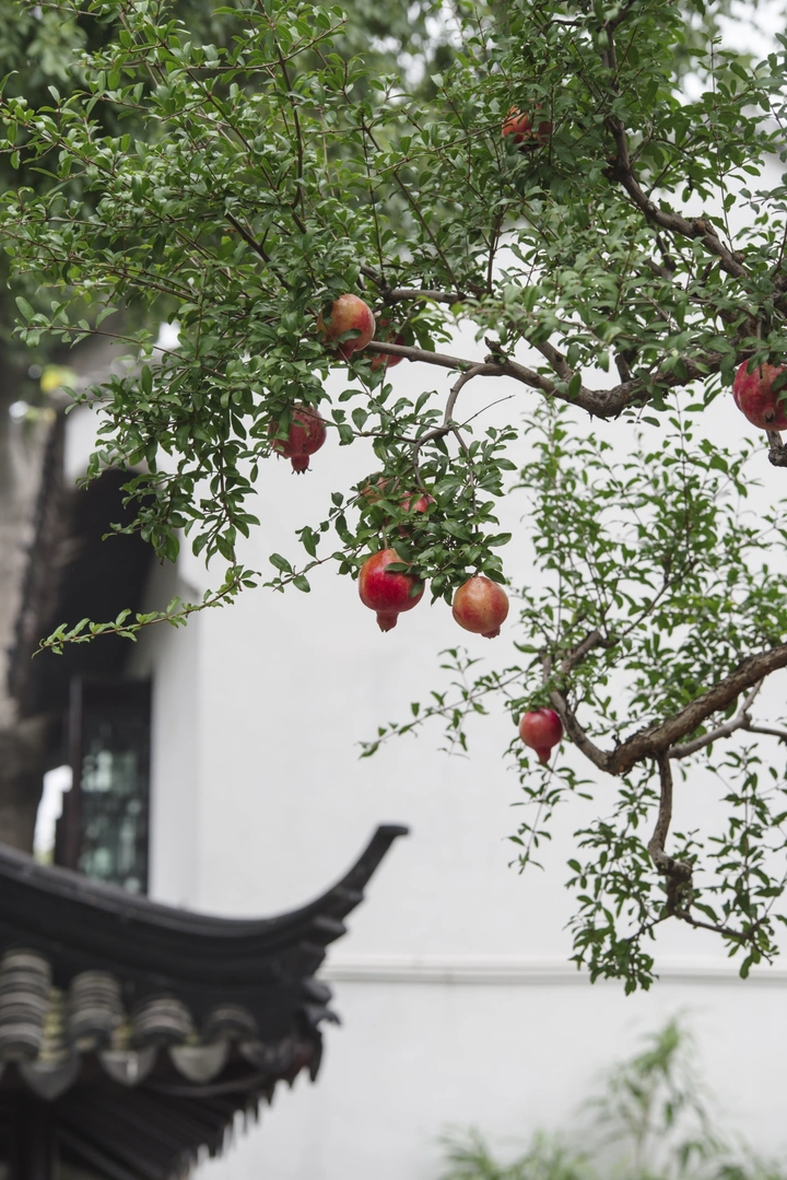 怡园门口的这棵石榴树应该是年代久远了吧,这树干有满满的故事感。