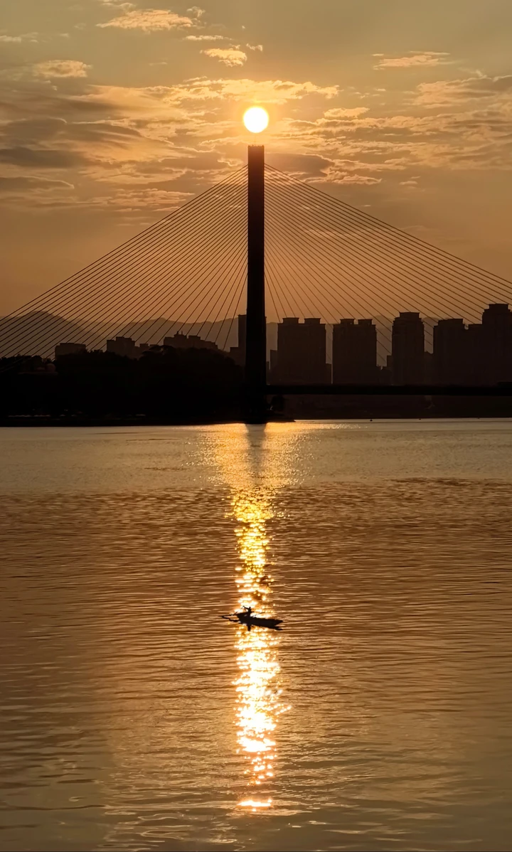 一整天多云,到了傍晚,天突然开了,江面金光粼粼。 一大票人站在江边,看得人挪不动脚。 夕阳无限好,怎能留得住? 定格。