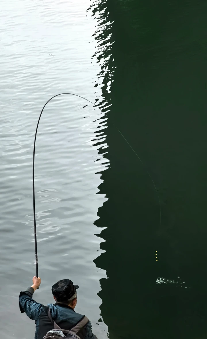 春天,钓鱼佬的春天。 我趴在栏杆上看人钓鱼,有感而发,赋打油诗一首: 双方分明暗, 一竿分阴阳。