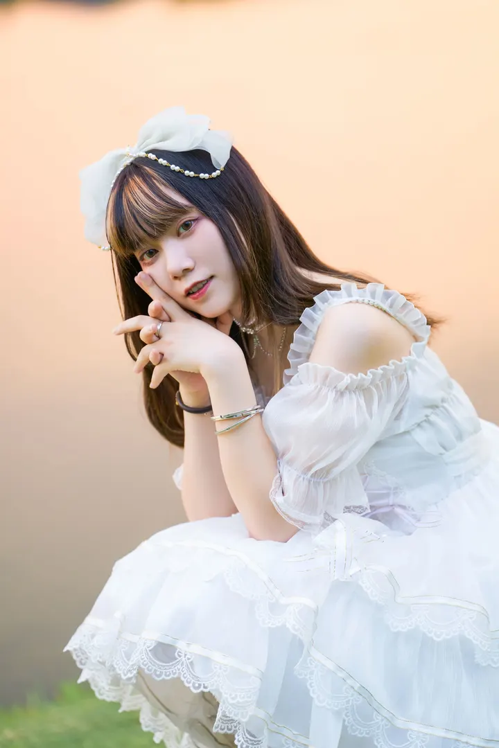 出镜:森祁; 摄影:筱溪; 当夕阳熔化了天际,泼洒下最温柔的鎏金。 她,身披最纯净的白,悄然立于这绚烂的幕布前。 如初雪般无瑕的蕾丝,层层叠叠,是少女未诉说的心语。 裙摆轻扬,在暖金色的风里,盛放成一朵不凋的铃兰。 珍珠点缀的冠冕,笼着柔和的光晕,仿佛下一秒,幸福就要轻轻降临。 这不是一场奔赴终点的婚礼, 而是少女心扉深处,最圣洁的“待嫁”时分。 夕阳为她披上金色的头纱,晚风为她奏响无声的序曲。 在光与影的交界,她安静地等待,或仅仅是沉浸于——这场献给自己的、纯白色的盛大幻想。 她不是谁的新娘, 她是落日余晖里,一首最纯净的散文诗, 是时光凝固的刹那,一封未拆封的情书。