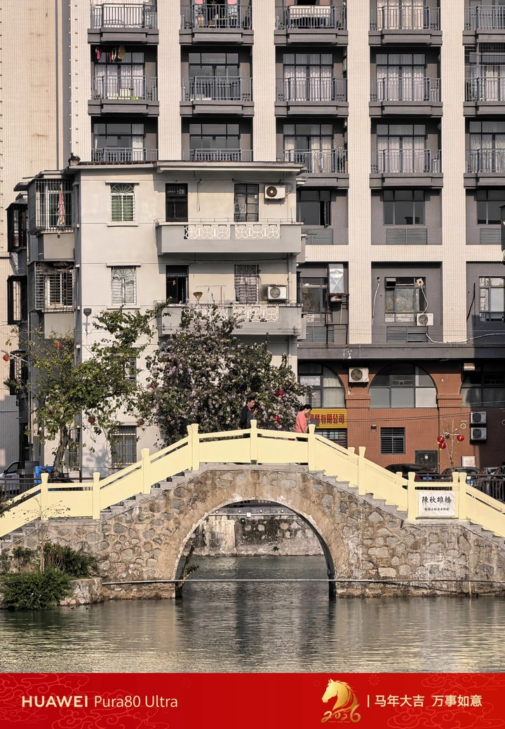 石桥拱着旧时光, 新楼在身后叠起日常。 水面浮着黄鸭的憨态, 桨声剪开一湖青绿。 水杉把影子斜斜铺在岸, 有人从林间走过, 把春天踩成细碎的声响。 落日漫过楼宇, 把云染成熔金, 把远山晕成淡墨。 风里有花草的余香, 也有马年的新愿, 轻轻落在每一寸人间。